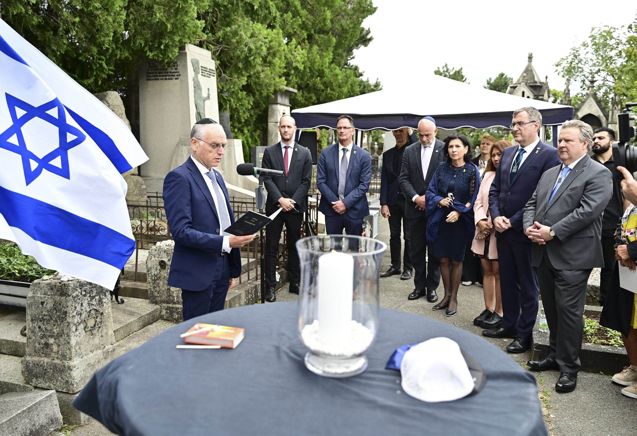 Auf Einladung der Botschaft des Staates Israel trafen sich am 3. Juli Vertreterinnen und Vertreter aus Politik und Kultur am Döblinger Friedhof, um dem Vordenker des Zionismus, Theodor Herzl, anlässlich seines 120. Todestags zu gedenken. 1904 wurde er dort begraben, und bis heute erinnert das Ehrengrab an eines der prominentesten Mitglieder der Wiener jüdischen Gemeinde. Das Gedenken markiert auch den Beginn des Herzl-Gedenkjahres. Botschafter David Roet, Bürgermeister Michael Ludwig und IKG-Vizepräsidentin Claudia Prutscher würdigten in ihren Reden das Vermächtnis von Theodor Herzl und betonten die Bedeutung des Kampfes gegen Antisemitismus heute. Marika Lichter las vor Ort Teile aus Herzls wohl bedeutendstem Werk „Der Judenstaat“. Oberkantor Shmuel Barzilei sprach das Totengebet El Malei Rachamim und sang die Hatikvah.